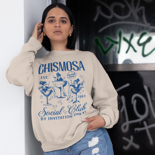 Chismosa Social Club Crewneck Sweatshirt | No Pos Wow! By Invitation Only! Funny Latino Fleece-Lined Crewneck | 3 Colors Available