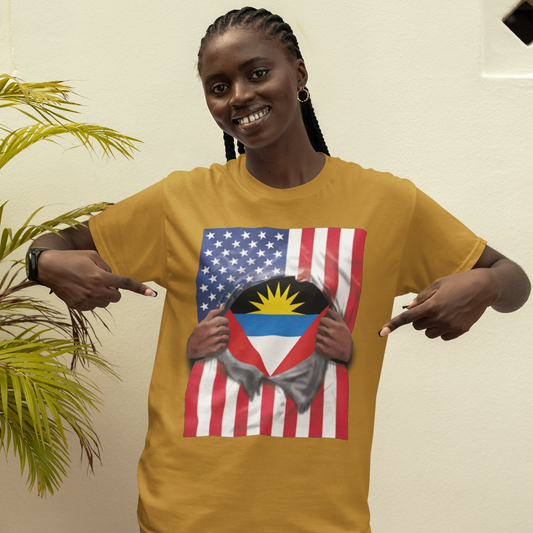 Antigua and Barbuda Flag T-shirt | Antiguan + American Flag Rip 4th Of July | Funny Latino Tees | 4 Colors