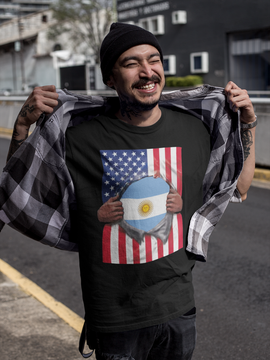 Argentina Flag + USA Flag Pride T-shirt | Argentina + American Flag Rip 4th Of July | Funny Viral Latino Tees | Unisex - 4 Colors