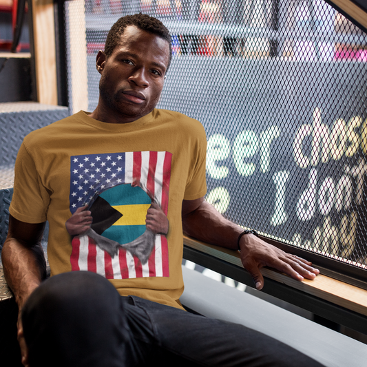 Bahamas + USA Flag T-shirt | Bahamian + American Flag Rip 4th Of July | Funny Latino Tees | 4 Colors