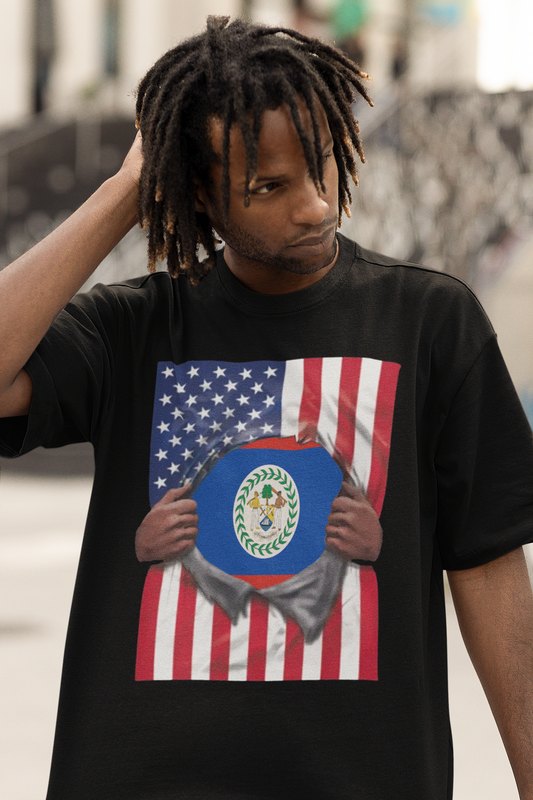 Belize Flag + USA Flag Pride T-shirt | Belizean + American Flag Rip 4th Of July | Funny Viral Latino Tees | Unisex - 4 Colors