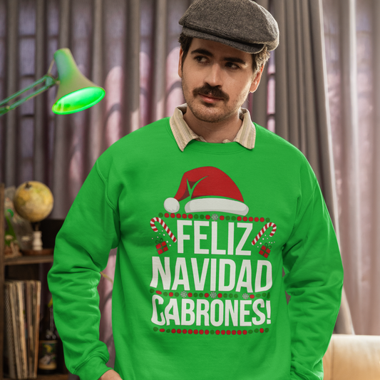 Feliz Navidad Cabrones Christmas Sweater | Crewneck Comfy Sweatshirt | Funny Latino Christmas Xmas | 4 Colors