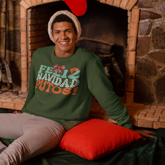 Feliz Navidad Putos! Christmas Comfy Crewneck Sweater | Latino Holiday 3 Colors