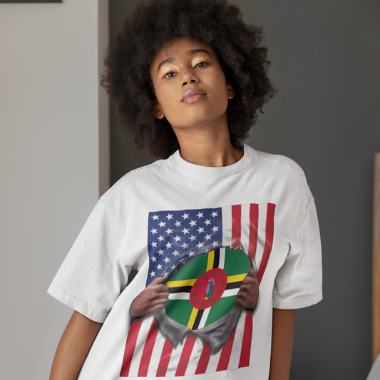 Dominica + USA Flag T-shirt | Dominican + American Flag Rip 4th Of July | Funny Latino Tees | 4 Colors