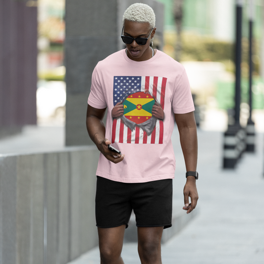 Grenada + USA Flag T-shirt | Grenadian + American Flag Rip 4th Of July | Funny Latino Tees | 4 Colors