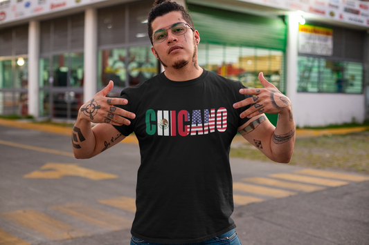CHICANO Mexico + USA Flag T-shirt | 4th Of July | Funny Viral Latino Tees | Unisex - 3 Colors