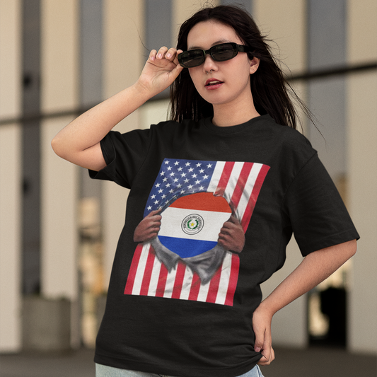 Paraguay Flag + USA Flag Pride T-shirt | Paraguayan + American Flag Rip 4th Of July | Funny Viral Latino Tees | Unisex - 4 Colors