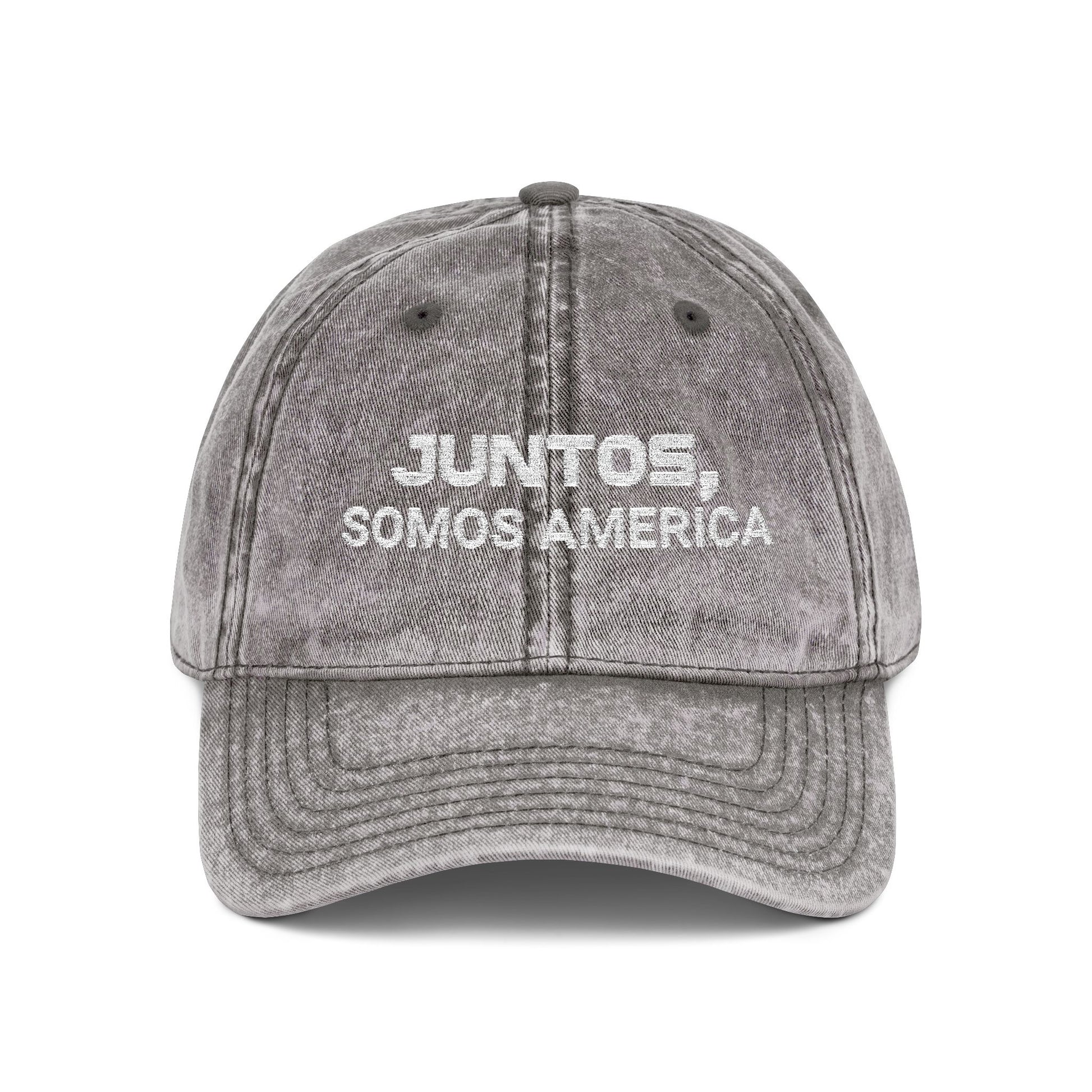 Juntos, Somos America Vintage Distressed 100% cotton twill Embroidered Dad Hat Cap | North, South, Central Unity | Adjustable Strap