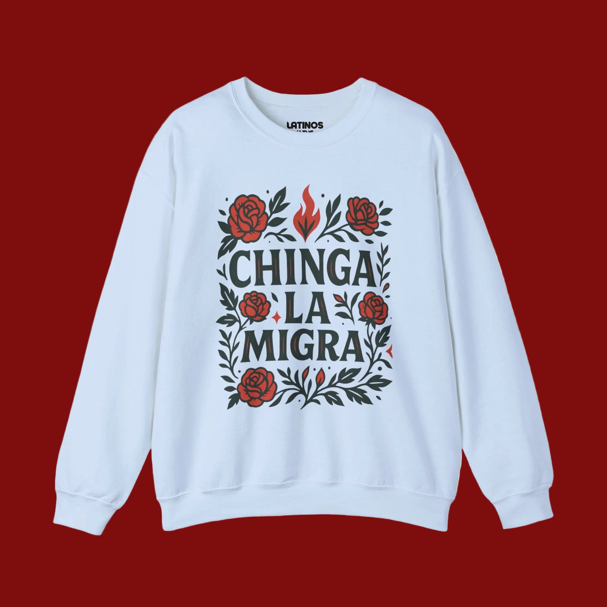 La Resistencia Double Sided Comfy Fleece-Lined Crewneck Sweatshirt | Chinga La Migra Protest Immigration Abolish Ice Justice | Latino Pride