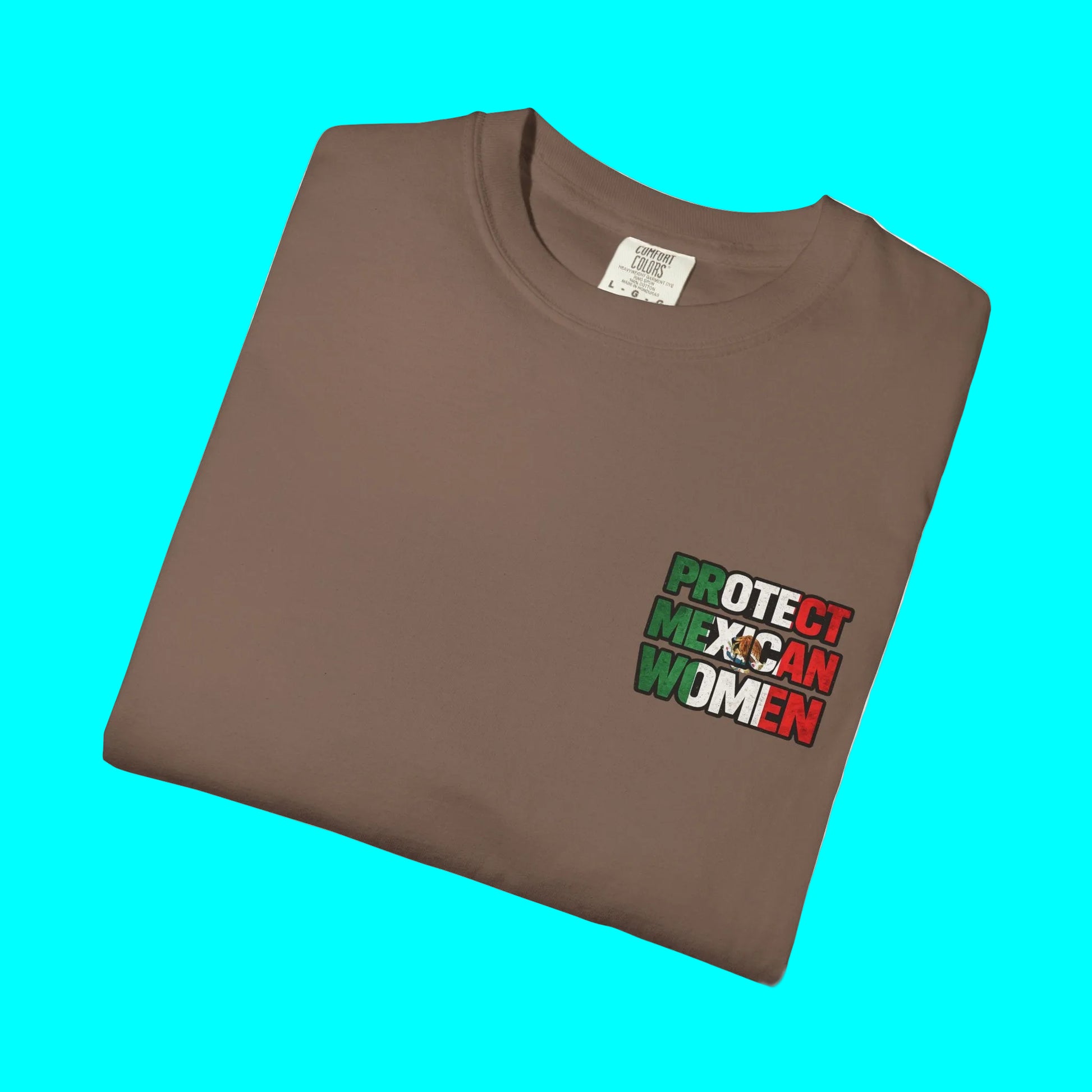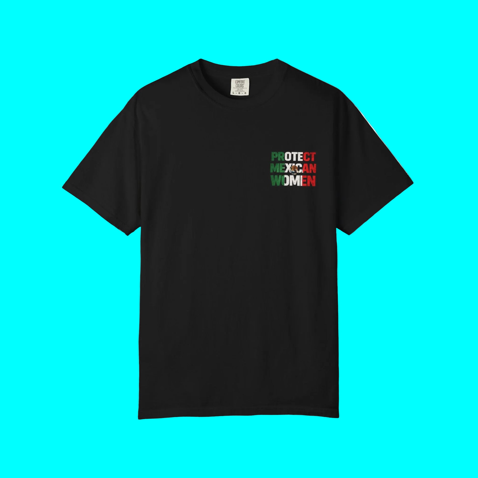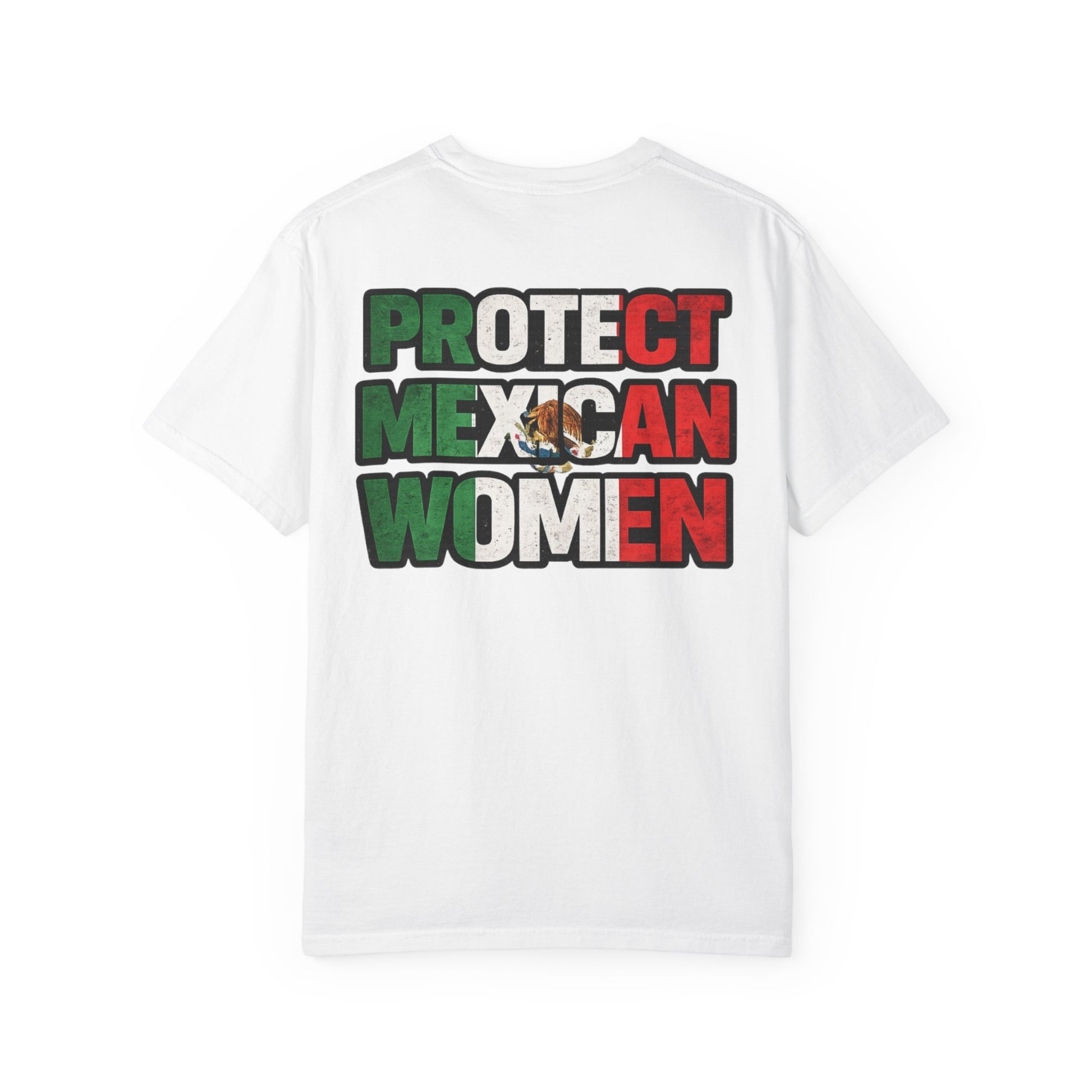 Features a bold “Protect Mexican Women” graphic with Mexican flag colors — a proud and meaningful statement of solidarity and heritage.