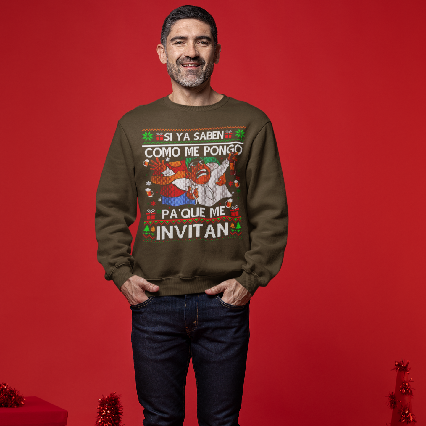 Si Ya Saben Como Me Pongo Pa Que Me Invitan Ugly Christmas Sweater | Crewneck Comfy Sweatshirt | Funny Latino Christmas Xmas | 4 Colors