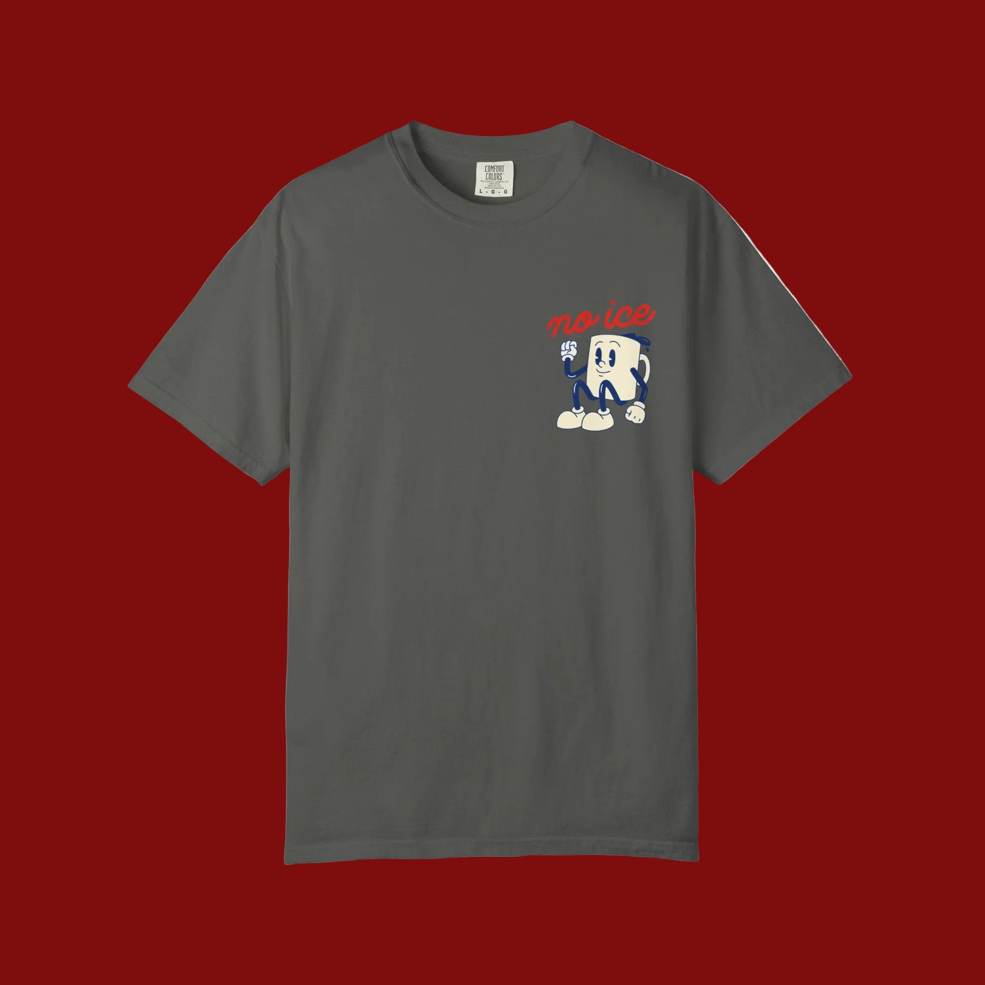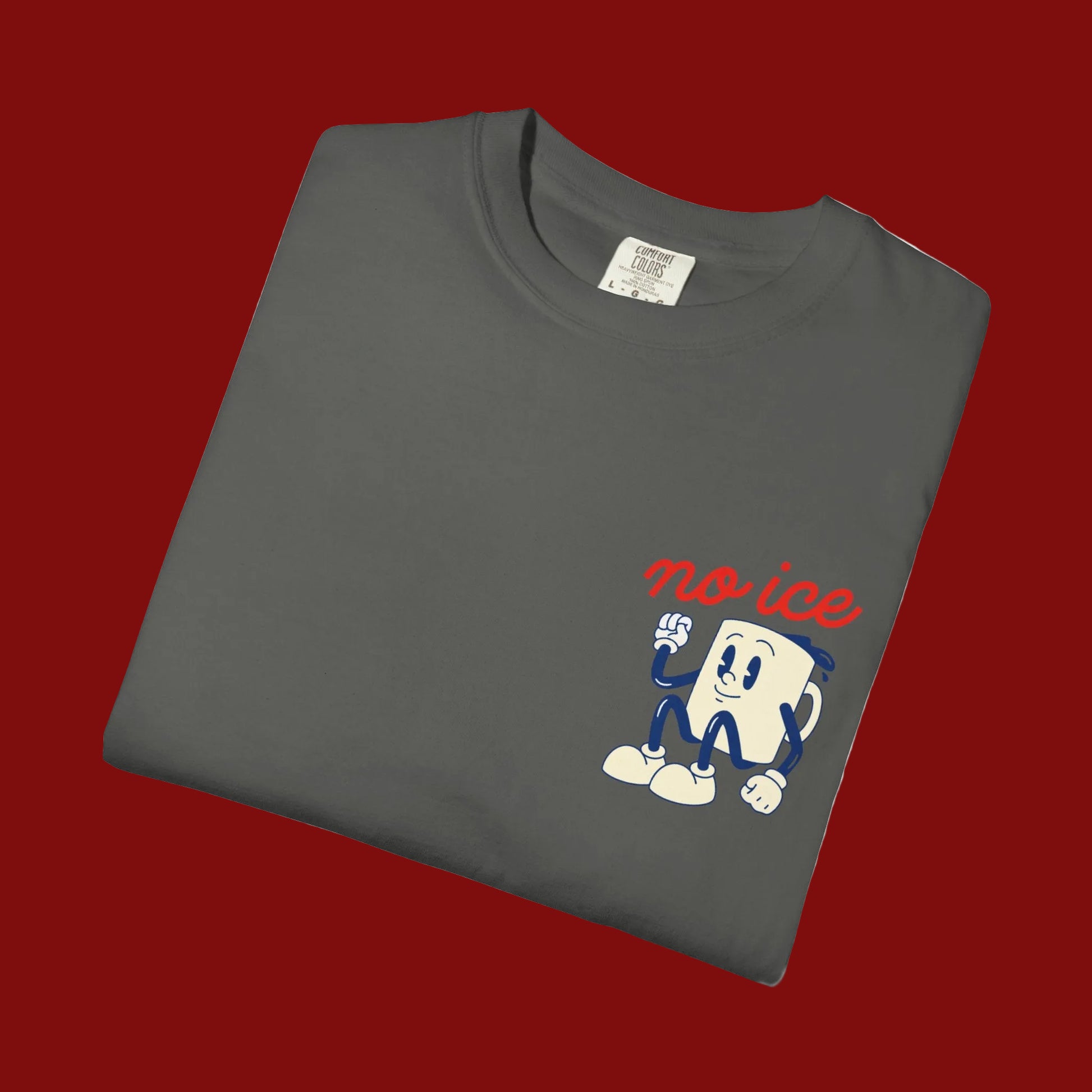 Features a bold “We Want No Ice in Our Community” retro style print that resonates with cultural identity, social consciousness, and expressive fashion.