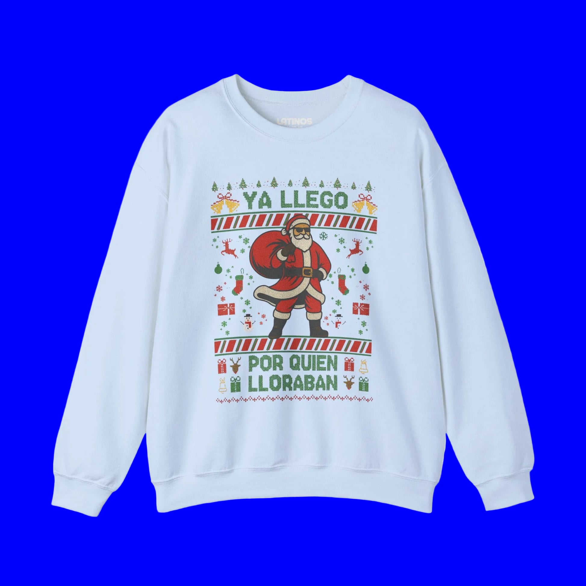 Ya Llegó Por Quien Lloraban Knit-Style Santa Christmas Crewneck Sweater | Funny Spanish Latino | 3 Colors